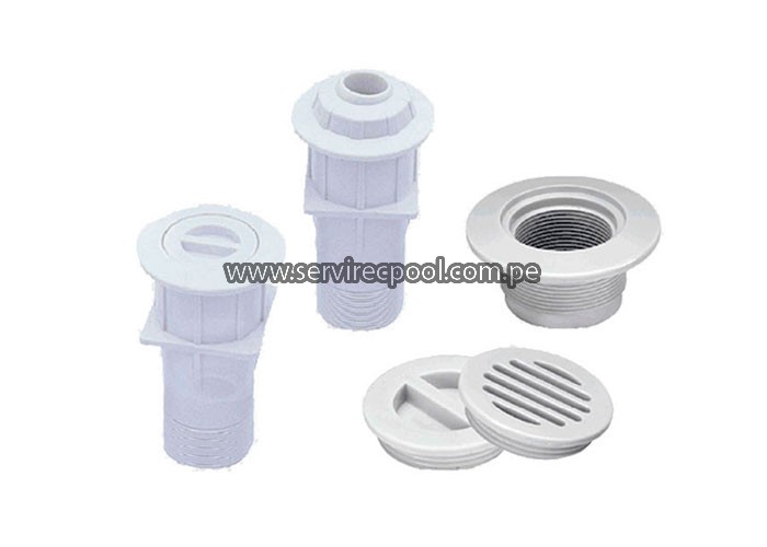 Las boquillas de entrada y salida del agua son hechas de ABS y PVC, son usadas para piscinas de concreto y vinilo.